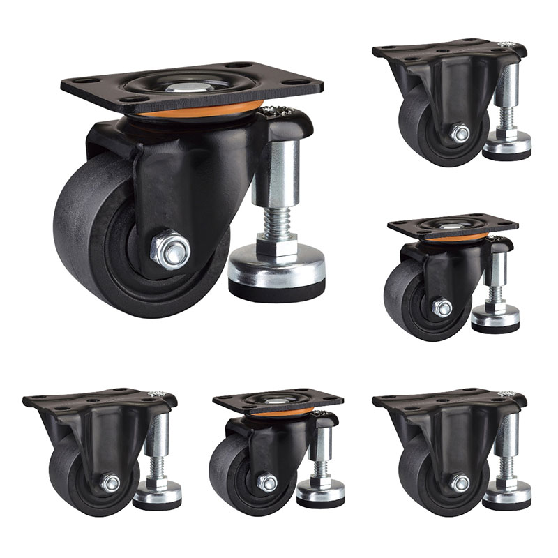 Tunga utjämningshjul Polyamidhjul erbjuder överlägsen hållbarhet och bärande kapacitet för industriella applikationer. När utrustningen rullas in i önskat läge sänker användaren anti-vibrationsplattan tills den pressas mot golvet. Detta lindrar hjulet i föremålets vikt och gör artikeln stationär. Nivåningsplattan eliminerar eller minskar all vibration eller rörelse som traditionellt är förknippad med standardbromssystem. Högstyrka polyamidhjulen motstår slitage, kemikalier och tunga belastningar, medan nivelleringsmekanismen säkerställer stabilitet på ojämna ytor. Idealisk för maskiner, arbetsbänkar och utrustning som kräver rörlighet och säker positionering.